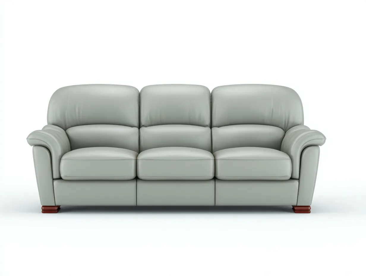 3 Sitzer Sofas-Leder-214x93x90 cm-Hellgrau-Klassischer Stil