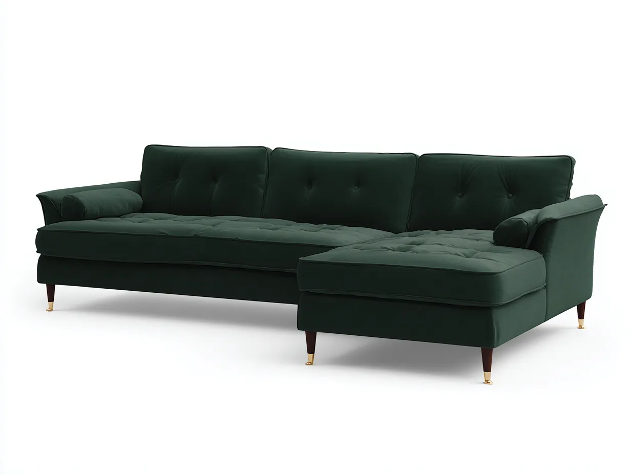 Ecksofa-Samt-Holz-292x170x84 cm-Dunkelgrün-Moderner Stil