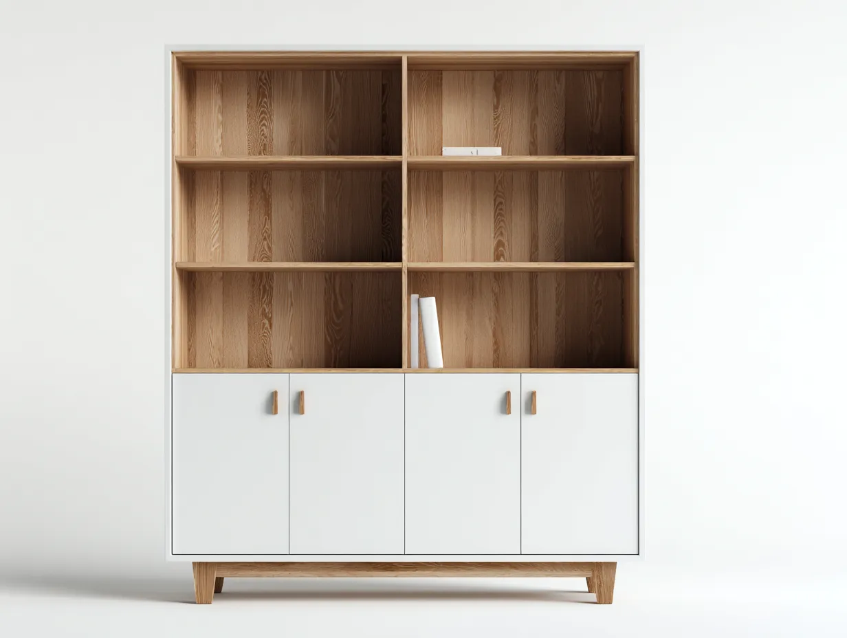 Bücherregal-Holzwerkstoff-120x42x182 cm-Weiß-Eiche-Moderner Stil