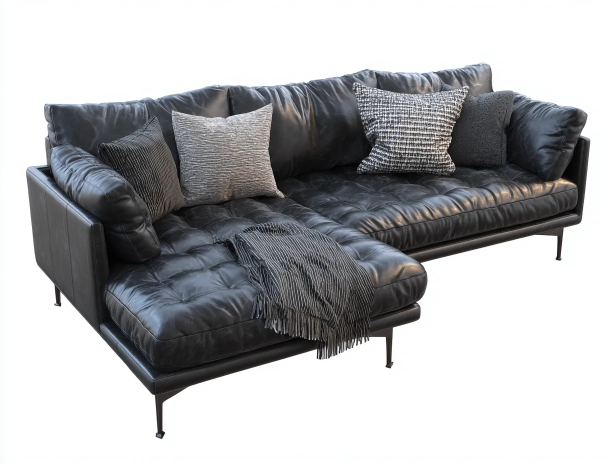 Ecksofa-Leder-292x168x84 cm-Schwarz-Moderner Stil