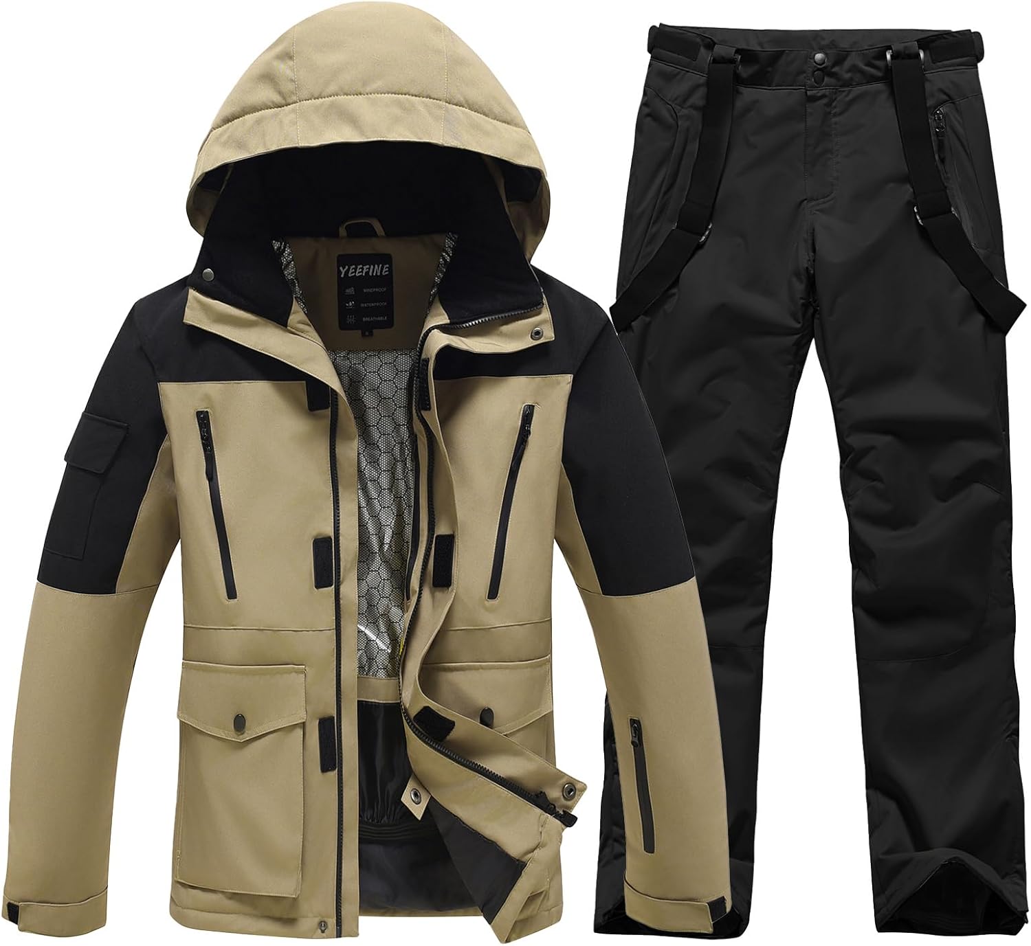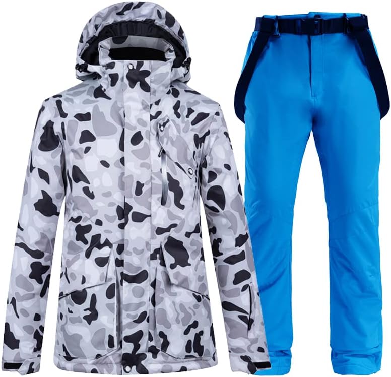 ALSOGO Skianzüge Für Herren 2-teiliger Snowboard Sets Wasserdicht Winddicht Winter Warme Ski Jacke und Hosen Set Zum Skifahren Snowboarden Klettern
