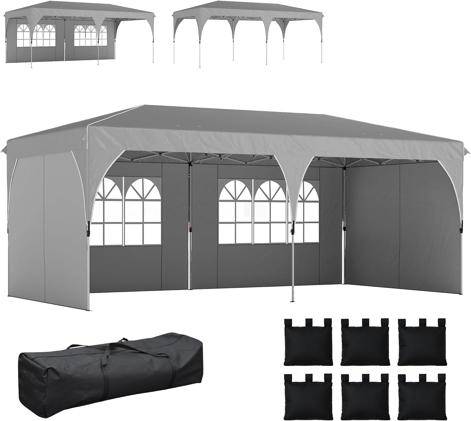 Outsunny Gartenpavillon 3 x 6 m Pop-up-Zelt, höhenverstellbar, wasserdicht, UV50+ Schutz, zusammenklappbarer Pavillon mit 4 Seitenwänden, 6 Sandsäcken, Tragetasche, einfache Montage, grau