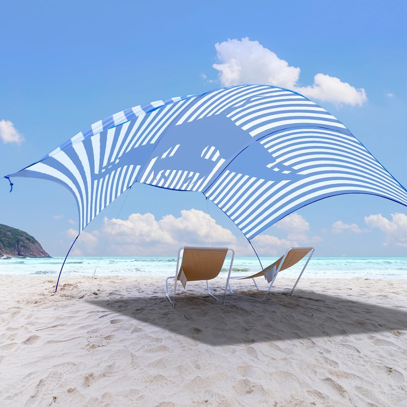 Strand-Sonnendach, Zelt, Unterschlupf, Winddach für Strand, Hinterhof, Park, Dessert, geringes Gewicht, einfacher Aufbau, 150 m2, Schatten für 3-6 Personen, Regatta-Mantastrahlen-Streifen